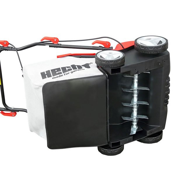HECHT 1999 оснащен травосбирником на 45 литров из плотной ткани, вмещает много мусора и не требует частой очистки, что является удобным при работе на больших участках. Электрический двигатель является наиболее экологически чистым источником энергии. Отсутствие вредных выхлопных газов, более тихая работа и простота обслуживания делают аэратор с питанием от электросети 220В оптимальным решением для частного использования.