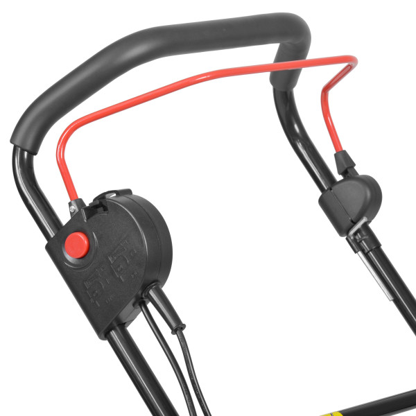 Эргономичная ручка с мягкой обтяжкой, на которой расположены рычаги управления, подстраивается под рост оператора, делая работу более комфортной и легкой. Специальный фиксатор провода предотвратит случайное отключение от удлинителя и избавит от необходимости содержать кабель рукой во время работы.
