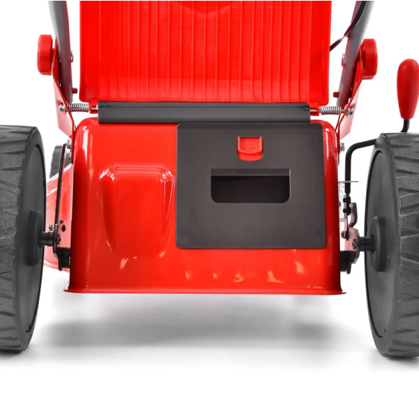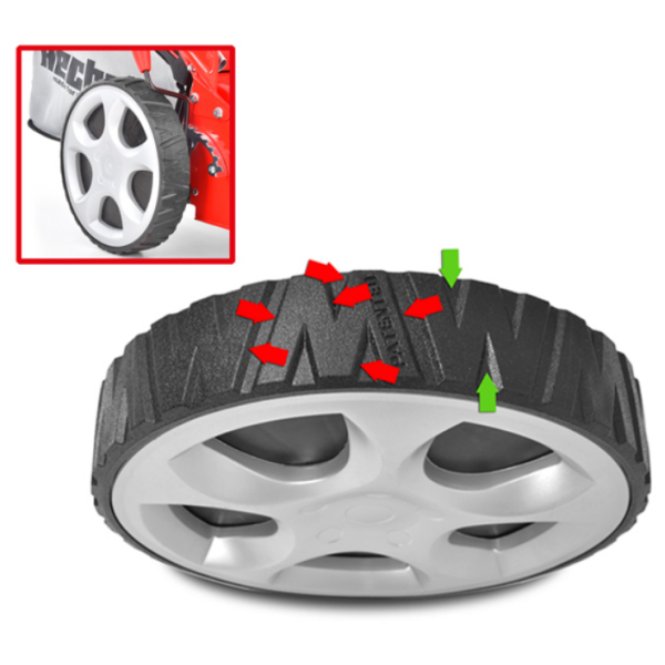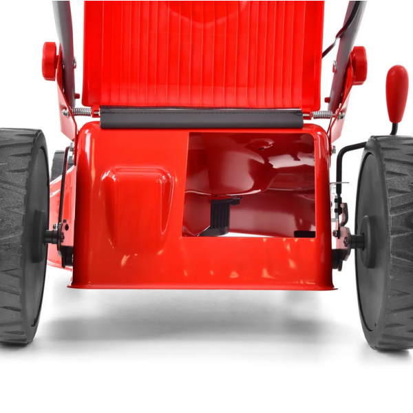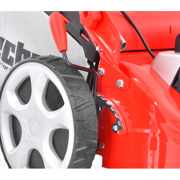 Преимуществом косилки являются большие задние колеса диаметром 280 мм, которые делают косилку более устойчивой и маневренной на газоне.
