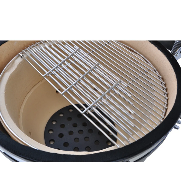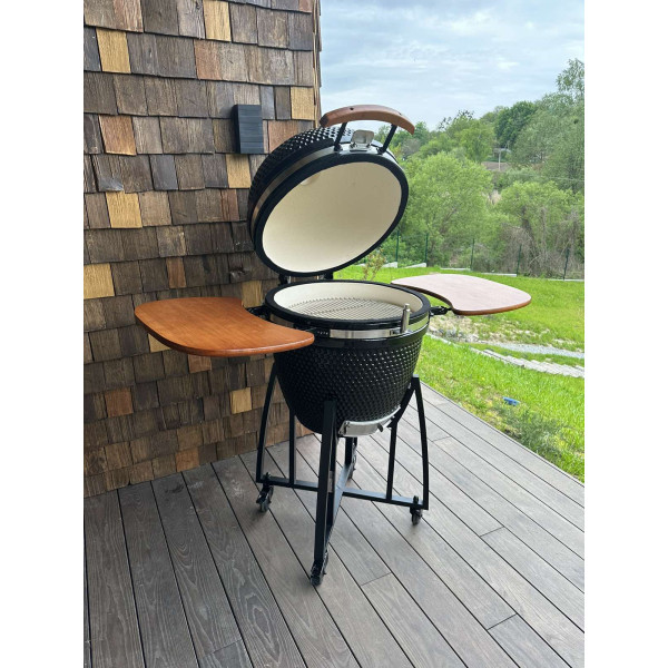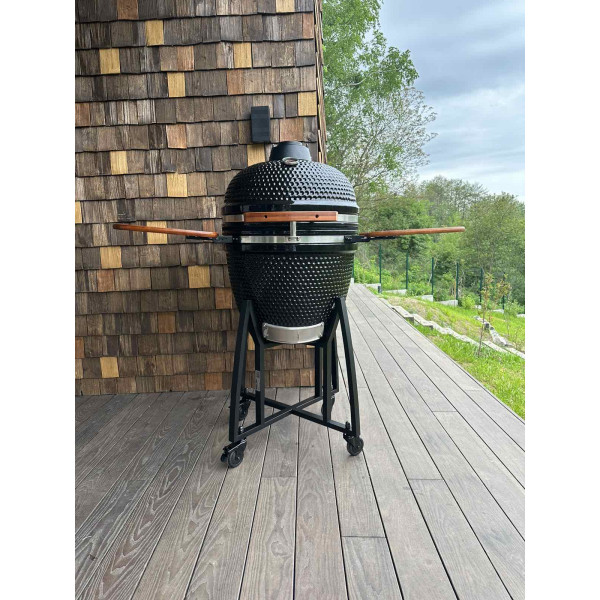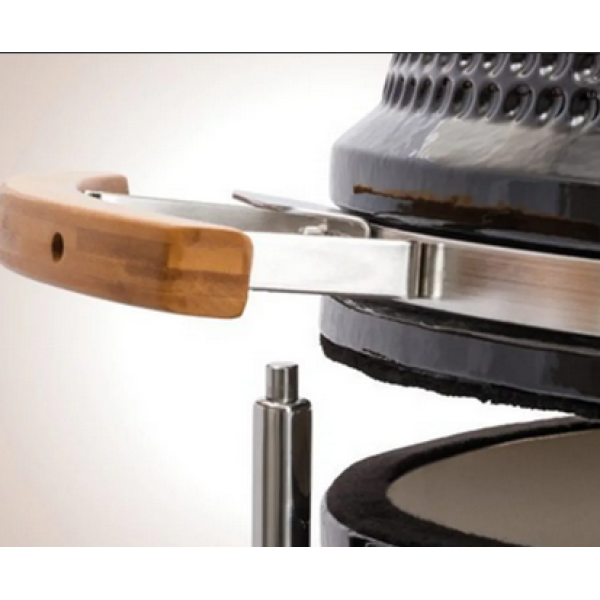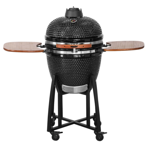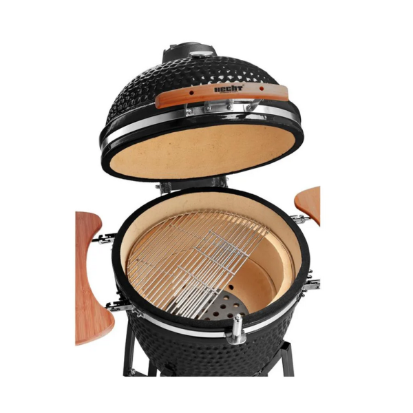 HECHT FERNO BLACK – керамический гриль, гарантирующий профессиональное качество приготовления пищи. Его корпус может достигать и удерживать температуру от 100 до 425°C. Это сохраняет сочность пищи во время долгого тушения. Благодаря японской технологии использует только 50% угля по сравнению с традиционными моделями. Встроенный термометр на крышке, чугунный дымоход и нержавеющая сталь обеспечивают отличный контроль температуры внутри гриля. Эксклюзивный дизайн включает в себя черную глазурованную керамику, нержавеющую сталь и складные полки из бамбука. Функция самоочистки позволяет грилю легко обезвреживать остатки пищи и жира. Чтобы облегчить перемещение, гриль оборудован колесами. Крышка керамической печи легко открывается благодаря пружинным петлям.