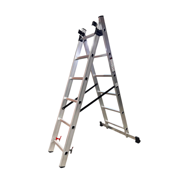 Трехсекционная лестница GTM KME306 – это идеальное решение для любых работ на высоте. Благодаря универсальной конструкции их можно использовать как приставную, выдвижную лестницу или стремянку. Усиленный алюминиевый профиль обеспечивает легкость транспортировки, долговечность и устойчивость к коррозии.
