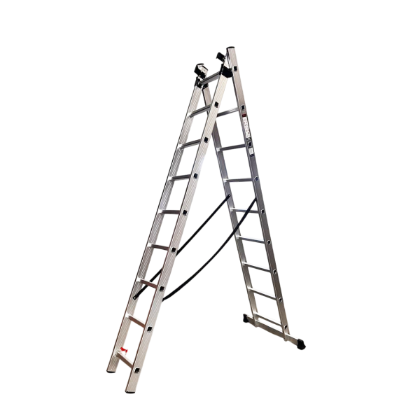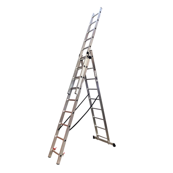 Трехсекционная лестница GTM KME309 – это идеальное решение для любых работ на высоте. Благодаря универсальной конструкции их можно использовать как приставную, выдвижную лестницу или стремянку. Усиленный алюминиевый профиль обеспечивает легкость транспортировки, долговечность и устойчивость к коррозии.