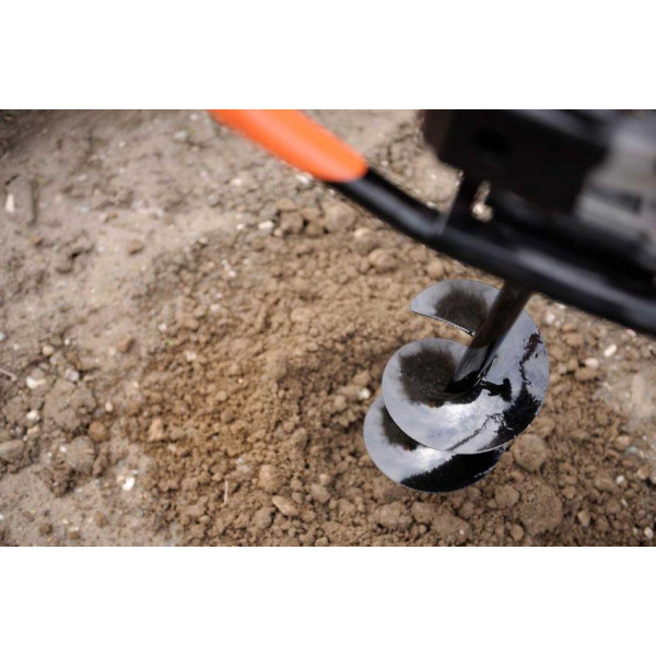 • фирменный мотор двухтактного типа экономно расходует бензиново-масляную смесь и обеспечивает эффективное бурение всех видов почв, включая каменистый грунт;