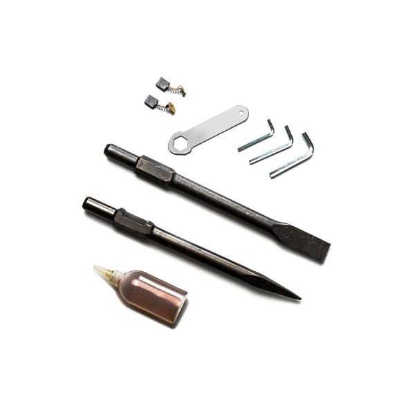 - Удобная комплектация – в комплект входят металлический кейс, пика и долото для готовности к работе.