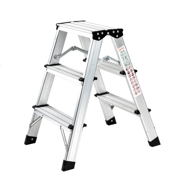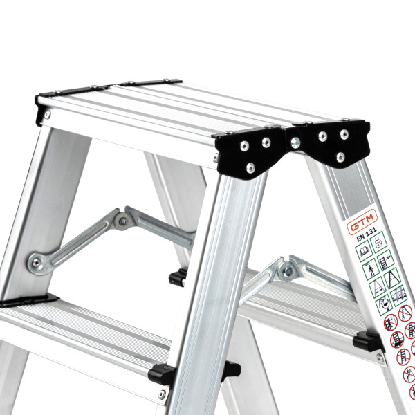 Описание Стремянка двухсторонняя GTM KMH1203 алюминиевая, 3 ступеньки 580 мм (KMH1203)